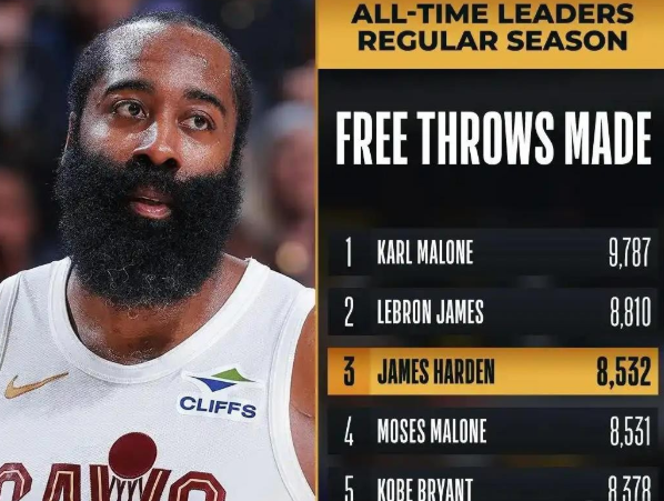 随着在今日克利夫兰骑士106-102险胜布鲁克林篮网的2025-26赛季NBA常规赛复出且罚中8个进球后,詹姆斯·哈登生涯罚球命中数已经正式超越摩西·马龙且升至历史第三,https://www.wbtimebig.com/ 仅次于退役的卡尔·马龙和在役的勒布朗·詹姆斯。值得一提的是,哈登此役还创下了克利夫兰骑士球队历史最老连续3场20+得分球员纪录。