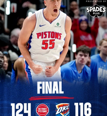 吉祥坊ios – 雷霆队多名球员缺阵,客场以116-124负于活塞队。坎宁安得到29分13篮板,杜兰特得到29分15篮板